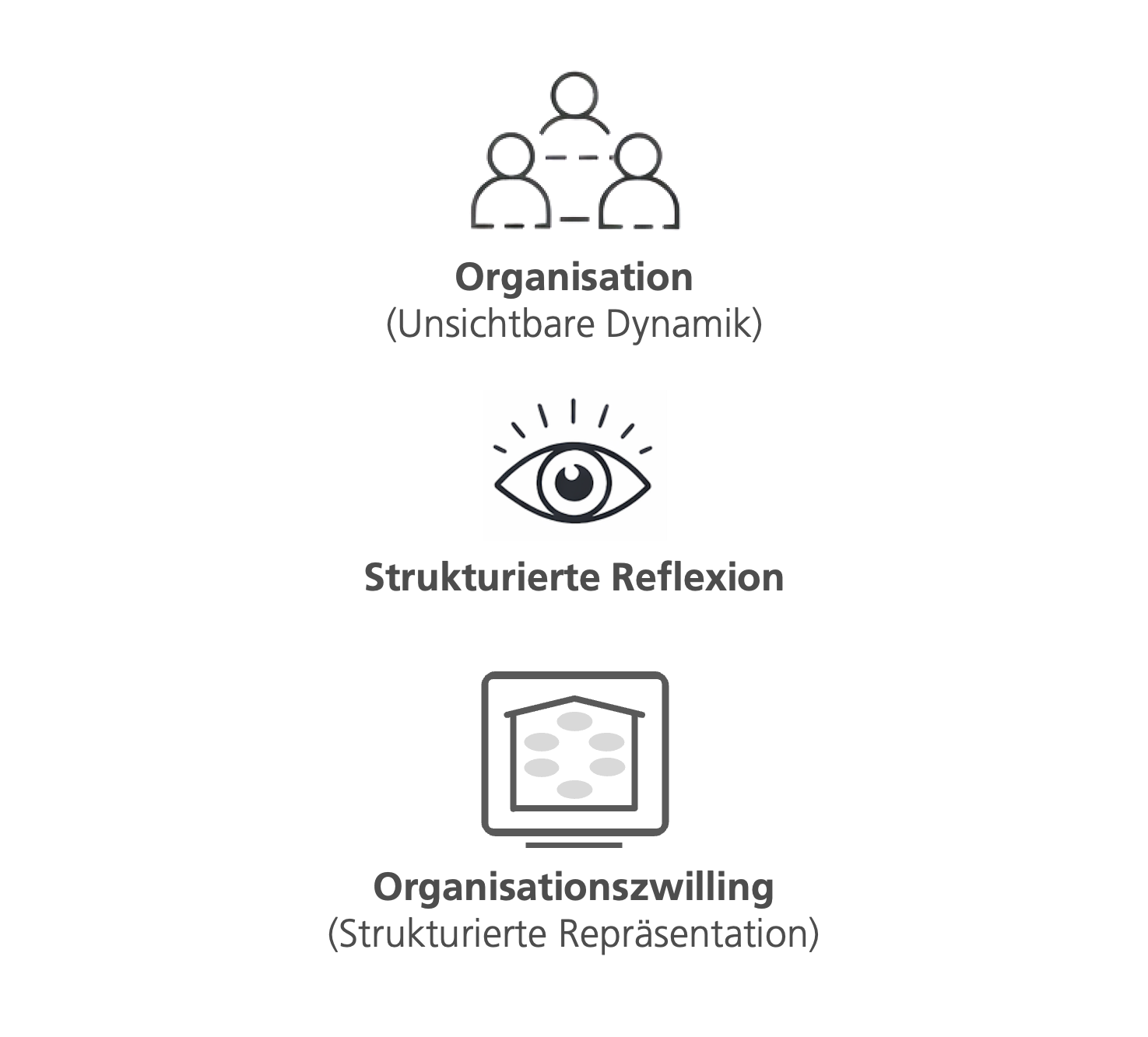 Ein Organisationszwilling ist eine evidenzbasierte Darstellung davon, wie eine Organisation als System funktioniert. Er vereint Erkenntnisse zu: